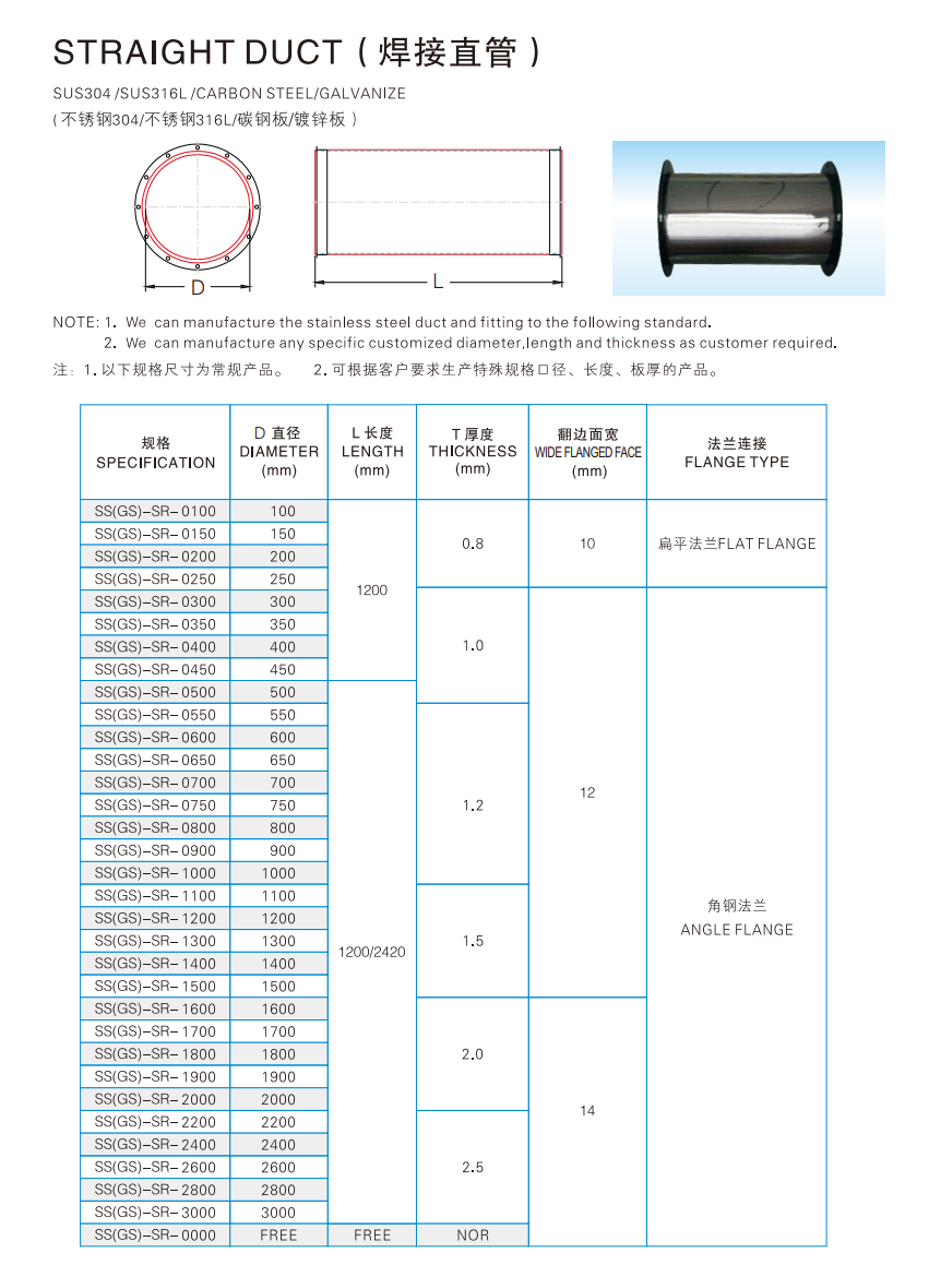 特氟龍不鏽鋼風管