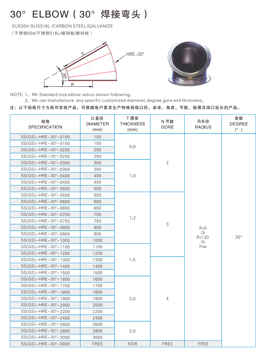 30°焊接彎頭(內襯ETFE)